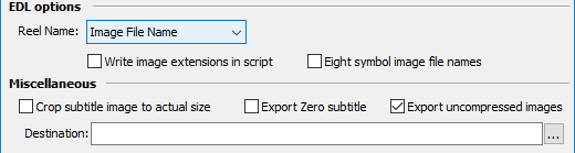 You can generate EDL script with images in various formats. Additional options are displayed when EDL is selected: