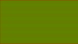 The two images are placed within a single frame where the one image occupies the even lines as the other image occupies the odd lines. If you load the video file in a normal (non-3D) video player you will see a picture similar to the one on the left. The red area represents the first image as the green area is the second one. |
