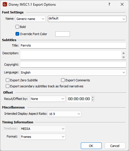 Disney IMSC 1.1 export option fully complies with Disney's IMSC Subtitle Specifications, including Disney's Japanese Subtitles - IMSC 1.1 specification.