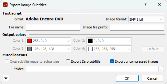 << Click to Display Table of Contents >> Navigation: Export Subtitles > Image Export Formats > Adobe Encode DVD |