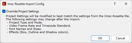 Enabling the Override Project Settings option may change your current Project Settings, as indicated on the image above. We recommend using the Override... option when the goal is to delivery subtitles that match the original Imsc-Rosetta file as close as possible.