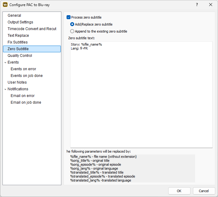 << Click to Display Table of Contents >> Navigation: Batch conversions and automation > Watch Folder Mode > Configuring Watch Folder > Zero Subtitle |