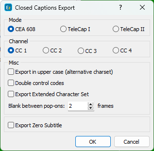 Enables the use of characters from the Line 21 extended character list set. Appropriate error message will be displayed on export if there were extended characters but the option wasn't switched on. |