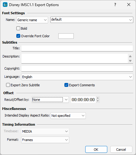 The Disney+ Japanese IMSC 1.1 export option fully complies with Disney's IMSC Subtitle Specifications, including with Disney's Japanese Subtitles - IMSC 1.1 specification.