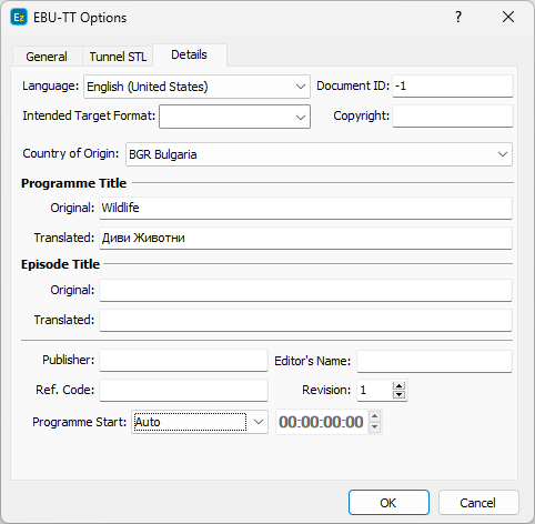 On the Details page you can enter some additional information which will be saved in the output XML file such as the Original Programme Title, Translated Programme Title, Country of Origin and etc.