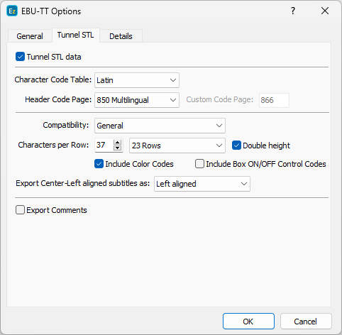 The EBU-TT specification provides an option to transport binary copy of the file contents as if they would have been saved as an STL file. It can be activated by the Tunnel STL data option.