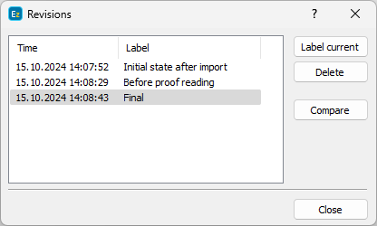 So to start with it and add new revision, simply go to File/Labeled Revisions and press the Label Current button on the displayed dialog window: