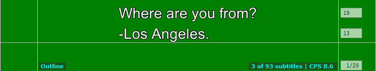 Subtitle's current Reading Speed will be displayed as number (CPS or WPM) in the lower right part of the editor as part of the caption showing Subtitle Information: