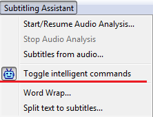 ▪clicking Toggle Intelligent Commands from the Subtitling Assistant's drop-down menu: