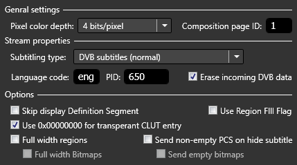 The DVB subtitle stream has several other properties which can be modified from the respective section: