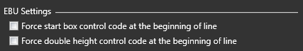 Force double height at the beginning of line - Insert Double Height control code at the beginning of each line. It can be used to overwrite the characters' height set by the original EBU (.STL) file whenever you feel it's necessary.
