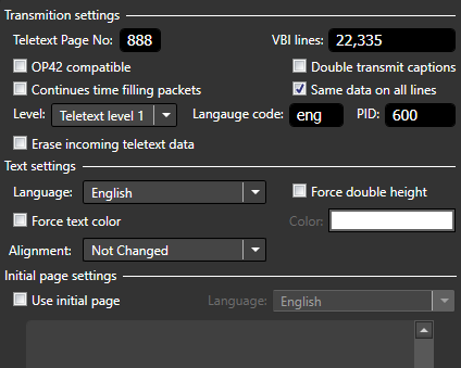 Note: Remember that the Erase incoming teletext data option must be switch off for each instance except the first one or otherwise the teletext data will not be encoded at all.