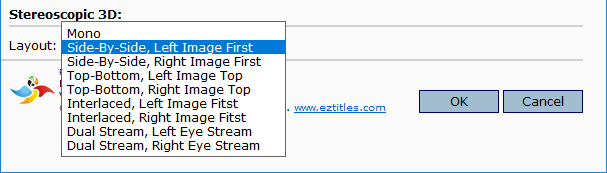 Here you need to specify the stereoscopic 3D layout which could differ from the one in the .ezt file. You can always select "Mono" if you want to "burn" the file as ordinary 2D subtitles.